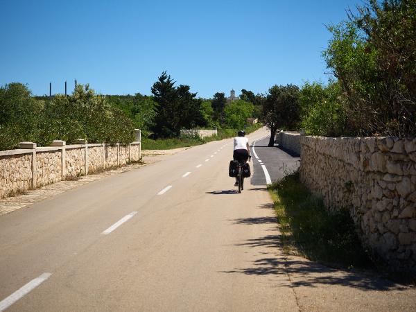 Tag Sechzehn von Supetarska Draga nach Pag inklusive einer lustigen Bootsfahrt (Fähre wäre zu hoch gegriffen) bei der die Räder an der Reling des Bootes vertaut wurden. Außerdem eine kleine Strecke die dem regulären Verlauf nach in einem großen Loch verschwunden ist.