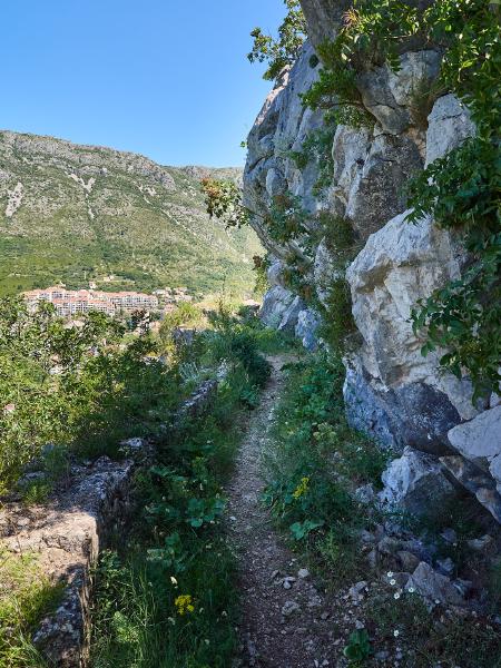 Tag Achtundzwanzig von Dubrovnik nach Zavala. Nach der Verschnaufpause in Dubrovnik geht es weiter in das vierte Land der Reise mit Bosnien. Hierzu erstmal über einen etwas ruppigen aber wunderschönen Wanderweg mit einigen Spinnennetzen die drüber gespannt waren aus Dubrovnik raus und dann nach der Grenze auf den Ćiro. Das ist die ehemalige Bahntrasse und eine wunderschöne einsame und karge Gegend hier im Grenzland.