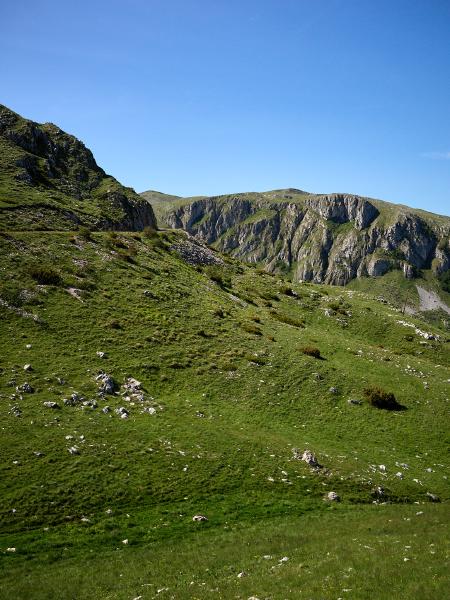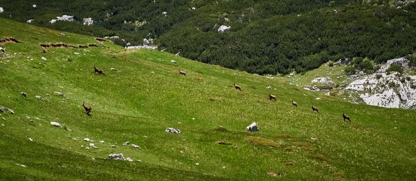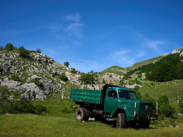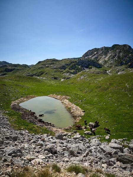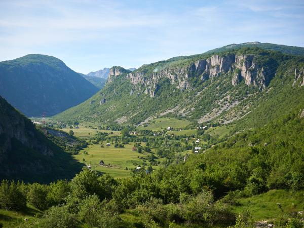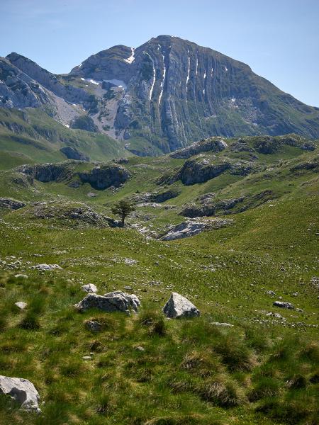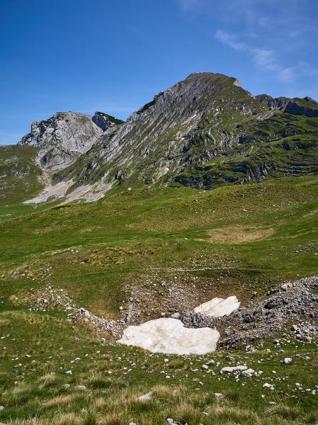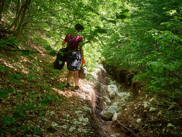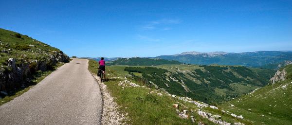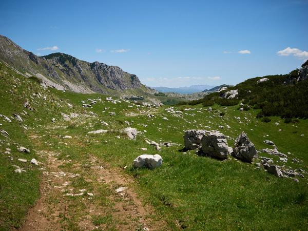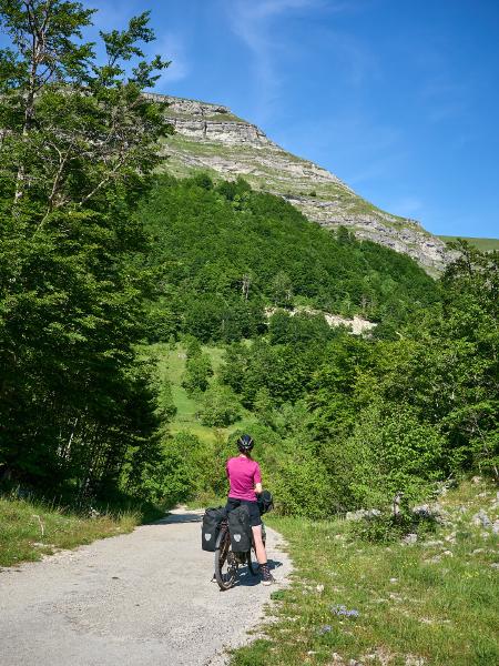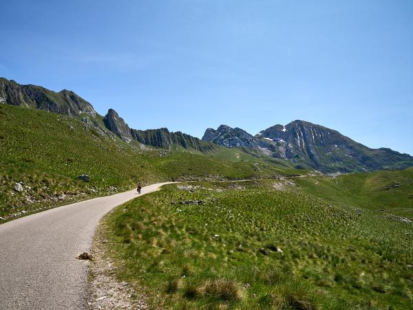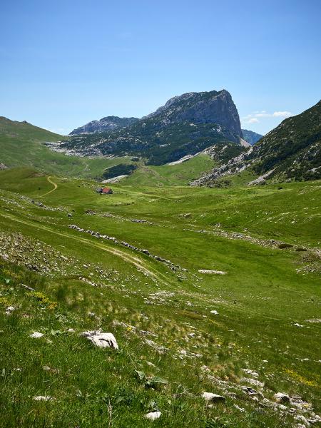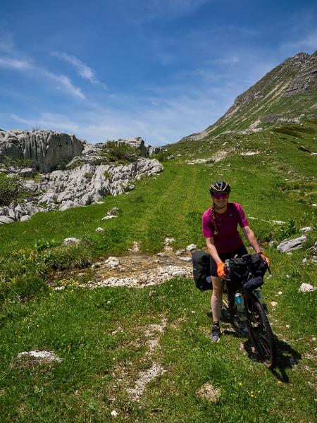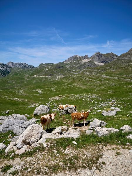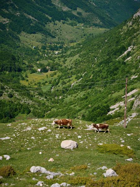 Tag Siebenunddreißig von der Hochebe von Pišče durch Dumitor in die Nähe von Šavnik. Fantastische Bergkulisse begleitet uns den ganzen Tag erst im alpinen Unterwegs und dann über die “Südausfahrt” wieder ins Tal. Erst freuten wir uns über die Ruhe (nix los) bei der Südausfahrt, die Freude wich dann aber auf halber Strecke der Erkenntnis, dass deswegen nichts los war weil der Weg weggeschwemmt war. Nach einer Stunde Bushwhacking und Rad- und Taschen-Tragen konnten wir dann wieder fahren. Die Landschaft hat dann aber auch wieder entschädigt.