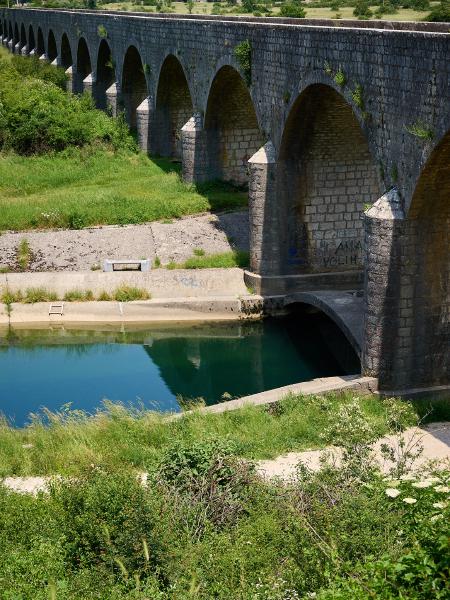 Tag Neununddreißig von der Nähe von Šavnik in die Nähe von Danilovgrad. Erst mal wieder Höhe gewinnen auf die Panoramastraße 1 und durch menschenarmes Gebiet. Dann in Nikšić mal Reserven auffüllen und schließlich über die Zeta mittels Emperor Bridge und eine Hügelkette wieder an die Zeta wo wir in einem malerischen Campingplatz gelandet sind.