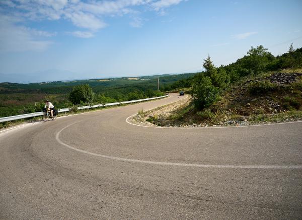 Tag Fünfzig von Gjakovë nach Kukës. Wieder zurück nach Albanien nach unserem kurzen Trip in den Kosovo. Die Autofahrer sind hier wirklich super, geben einem viel Platz, immer wieder Daumen hoch und auch manchmal eine mündliche Aufmunterung (“Forza!”). Ansonsten heute ein Tag mit etwas trüber Fernsicht und ein paar Wolken als Sonnenschutz.