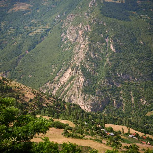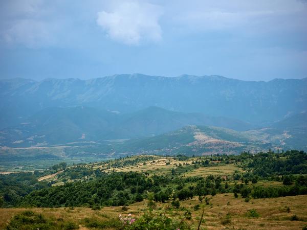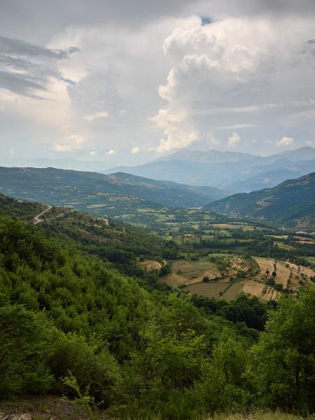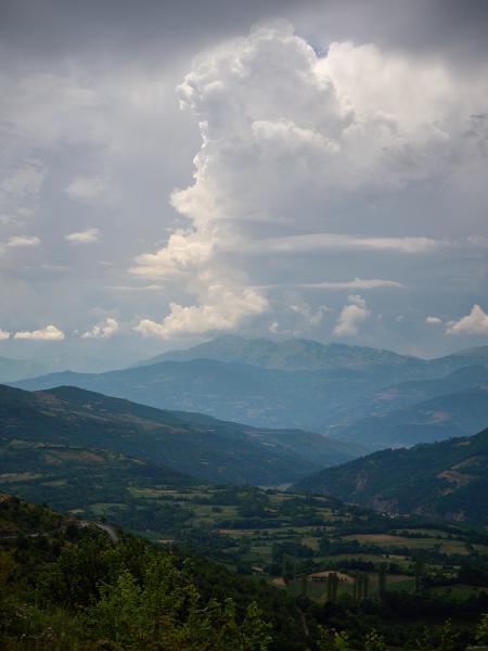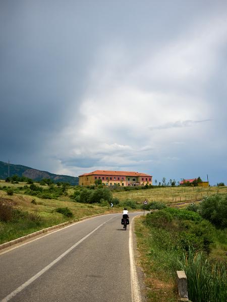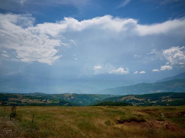 Tag Einundfünfzig von Kukës nach Peshkopia. Nach einem sehr schwülen Morgen ging es über steile Anstiege und Anfahrten weiter. Beim zweiten längeren Anstieg bei Ploshtan/Ceren wartete ein Gewitter bisschen daruf sich von den Bergen zu lösen und talwärts zu ziehen. Glücklicherweise kamen wir mit ein paar Tropfen und dem Donner als Begleiter davon. Was erwähnt werden muss ist, dass auch hier Anstiege und Abfahrten etwas unbefriedigend sind in dem Sinn, dass es erst unnötig steil bergauf und dann natürlich auch zumeist genauso steil bergab geht. Da kommt man leider kaum in den Genuss die Höhenmeter etwas zu genießen, sondern sorgt sich um die Bremsen. Andererseits sind auch heute wieder die vielen be- und entgeisterten Autofahrer, Hirten und andere sich in Straßennähe befindenden Leute eine gute Motivation beim Fahren.