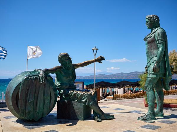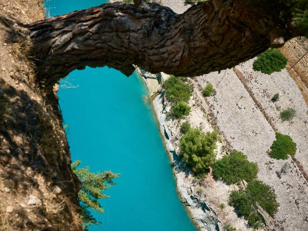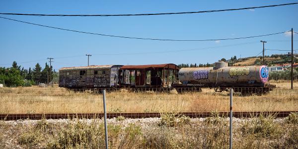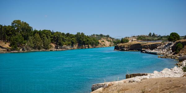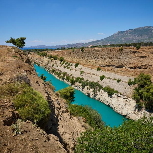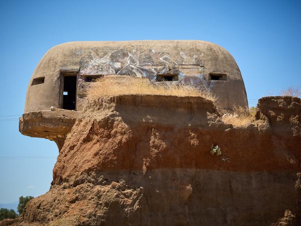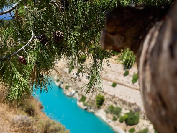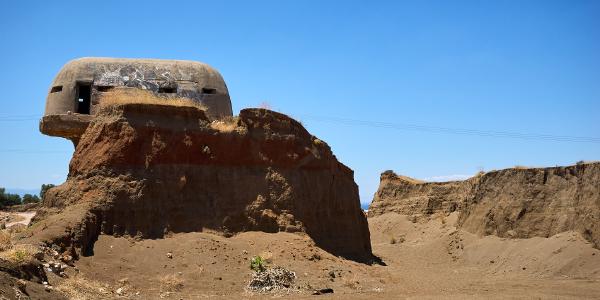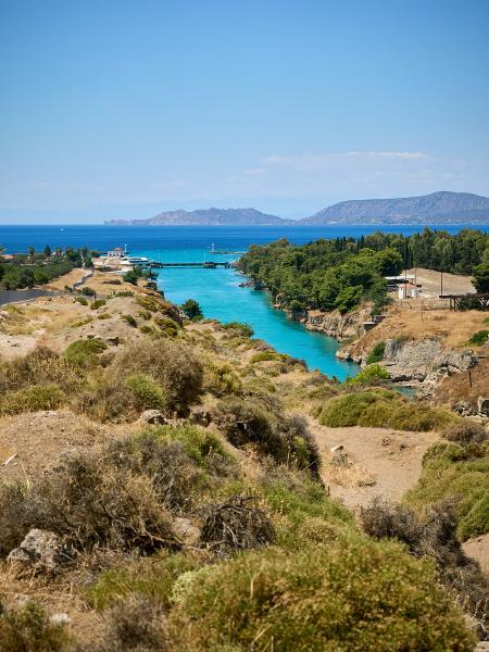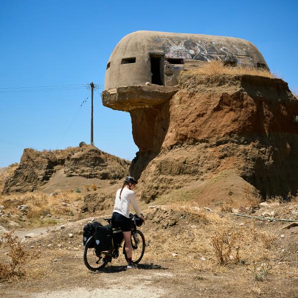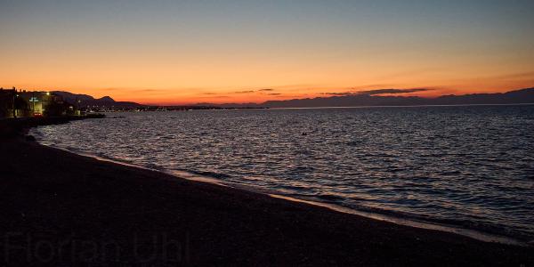 Tag Dreiundsechzig von Athen/Kineta nach Kato Assos. Nach einer Fahrt durch den Athener Verkehr (einfach mitschwimmen, auch wenn man eine 4-spurige ohne Ampelregelung/ohne verkehrsleitende Polizei queren muss) zum Bahnhof und dann raus aus der Stadt um nicht zu viel vom Verkehr genießen zu dürfen. In der Bahn das klassische internationale Bild - Verwirrte Überforderung mit der Existenz von Radfahrern. Immerhin war es bis auf spezielle Passagiere entspannt und schmerzlos. Also in Kineta aus dem Zug und dann entspannt die Küstenstraße entlang und den Ausblick auf das Meer genießen - dachten wir. Erst geht es an Kilometern von 2 Meter hohem Betonzaun entlang und dann durch eine Raffiniere. Gut. Also doch nur durchfahren und wenig genießen. Dann am Kanal von Korinth angekommen bisschen Kanal (und alte deutsche Bunker) besichtigen. Man fühlt sich bisschen wie auf einem Filmset. Danach geht es weiter nach Korinth selbst (plötzlich Radweg!) und dann noch zu unserer Unterkunft. Abends dann direkt am Strand Essen und nach Sonnenuntergang schrecklich vollgegessen die Füße noch mal kurz ins Meer halten. So hatte ich mir das in Griechenland vorgestellt.