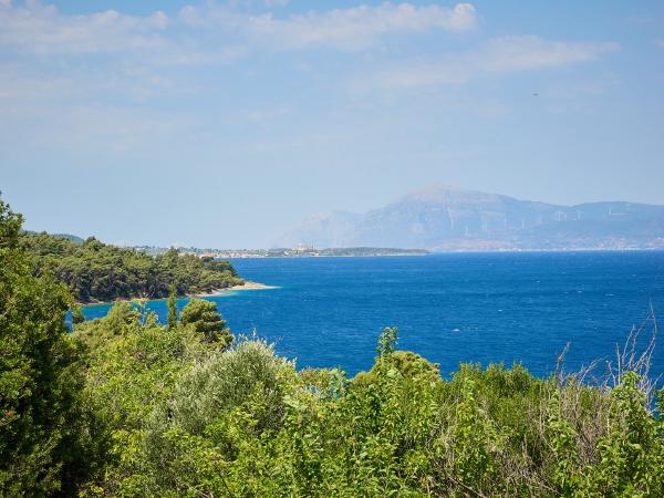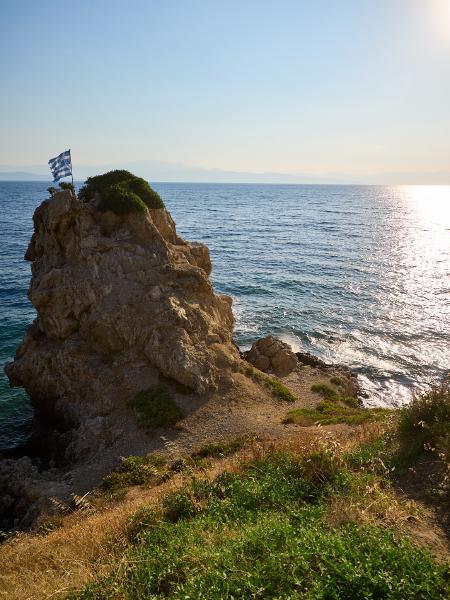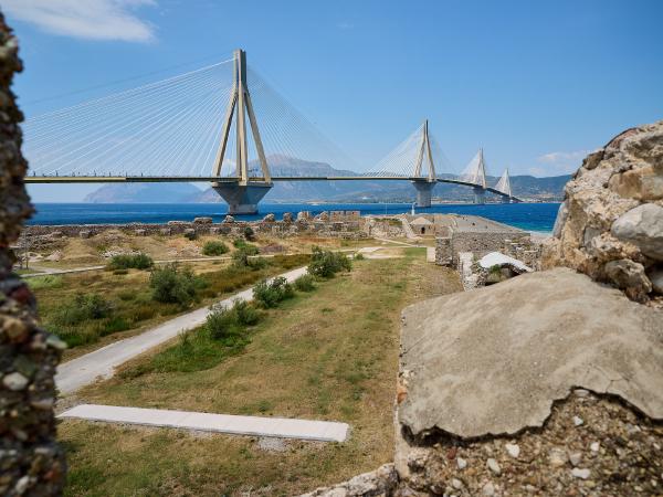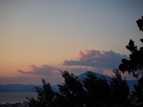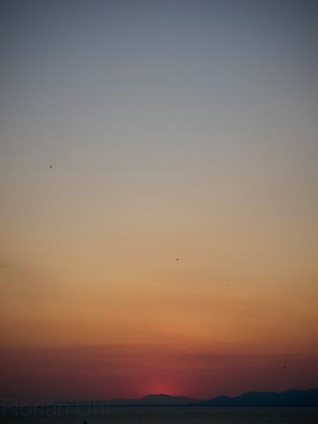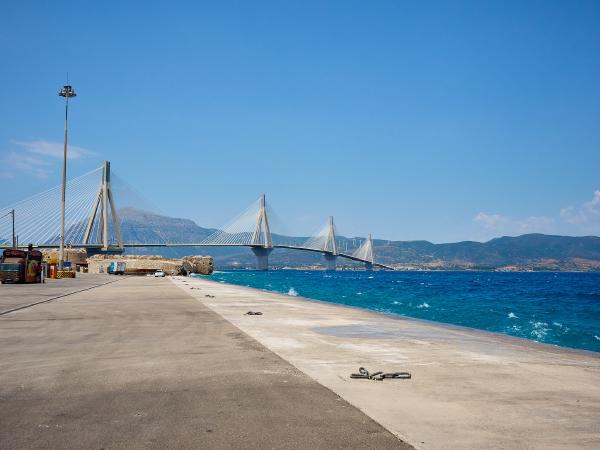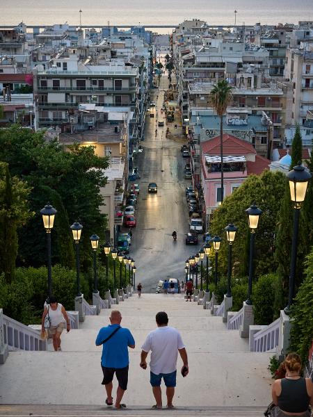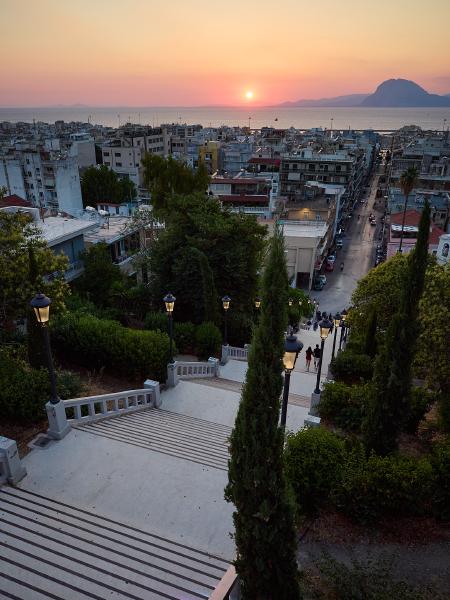 Tag Nummer Fünfundsechzig von Krathio nach Patras. Die Nacht war leider etwas heiß (erst weit nach Mitternacht Temperaturen unter 30ºC) und wenig zugig. Also nach dem kleinen Heldenfrühstück (Schokomilch und ein Schokocroissant) den müden Körper auf das Rad gehieft und los gefahren. Erst etwas zähe setzen wir uns also Richtung Patras in Bewegung, laut Thermometer dann auch schon bei 28ºC um halb Acht in der Früh. Immerhin haben wir kräftigen Rückenwind, der uns die Küste entlang schiebt. Unser erster etwas größerer Stop ist dann in Egio, wo wir die müden Geister mit Kaffee und Gebäck einsatzfähiger machen. Nach dem Frühstück um Neun merken wir dann schon, dass es heute wohl sehr warm wird, also keine Zeit verlieren und schnell weiter. Die weitere Strecke nach Patras hat dann ein schön rollendes Profil, also leichte Anstiege gefolgt von kurzen Flachstücken und oder flachen Abfahrten. Unterwegs bleiben wir dann mal unfreiwillig (Glassplitter im Vorderreifen) und mal freiwillig (Brücke und Burgruine Rio) stehen. Die Einfahrt nach Patras gestaltet sich als erstaunlich angenehm nach unseren Thessaloniki-Erfahrungen. Sogar Radwege gibt es die plötzlich auftauchen und genau so schnell auch wieder verschwinden. Erst kann uns Patras nicht so recht mit seinem Charme begeistern, aber als wir dann vom Fährhafen und den Uferstraßen wegkommen offenbart sich die Stadt auch wieder als nicht ganz verkehrt. Schöne Streetart und auch ansonsten hübsche Ecken gibt es hier. Es ist halt wirklich so, dass man Orte leicht abschreiben kann, wenn man nur kurz durch fährt, sie aber doch immer auch ganz feine Ecken haben wenn man sich die Zeit nimmt. Nach einem reichhaltigen Abendbrot haben wir dann noch genau das Scheiden des Sonnenlichts von den Agiou Nikolaou Treppen beobachten können.