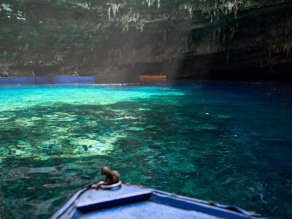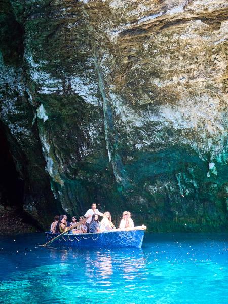 Tag Nummer Neunundsechzig von Argostoli nach Sami. Der Morgen war schon wieder recht warm und schwül, jedoch waren die Aussichten die sich uns Boten die Mühen wert, außerdem bekamen wir in einem netten kleinen Laden leckeren Kuchen, Eis und eine hausgemachte Limonade die uns wieder auf Vordermann brachten. Danach ging es über Straßen und Schotterwege, bergauf und bergab über die Insel drüber. In der Nähe von Sami konnten wir dann noch zweieinhalb Höhlen besuchen. Die waren eine willkommene Abkühlung. Und zudem sehr schön und beeindruckend Anzusehen.