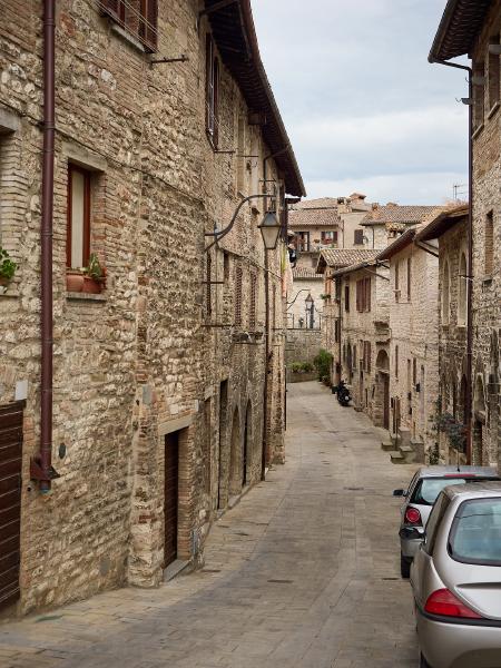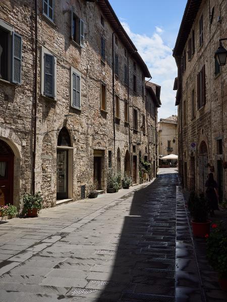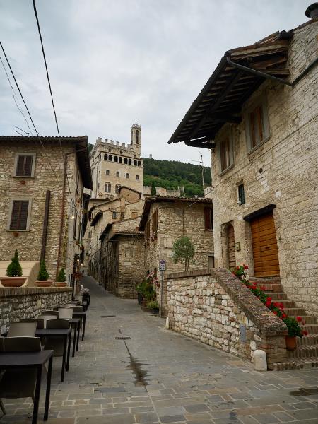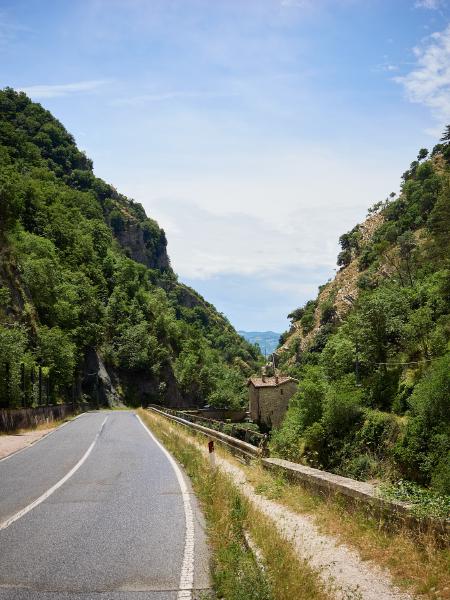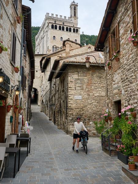 Tag Nummer Sechsundsiebzig vom Furlo in die Nähe von Gubbio. Heute geht es nicht über kleine Hügel, sondern über kleine Pässe. Der Unterschied ist klar zu merken, da wir es plötzlich mit sehr verträglichen Steigungen zu tun haben. Die tun vollbepackt deutlich weniger Weh. Einziges Manko heute ist das Wetter. Uns wird schon vom Wegfahren an Regen angedroht, der uns aber erst im Anstieg zum letzten Pass vor Gubbio wirklich erwischt. Aber immerhin nur im Anstieg. Die herrliche Abfahrt haben wir dann bei Sonnenschein vor uns liegen. Fantastisch. Danach geht es noch mal nach Gubbio rein bevor wir uns noch den letzten Anstieg zu unserer Unterkunft vornehmen. Der ist dann natürlich wieder etwas gemeiner, aber wir haben ja nichts anderes mehr vor.