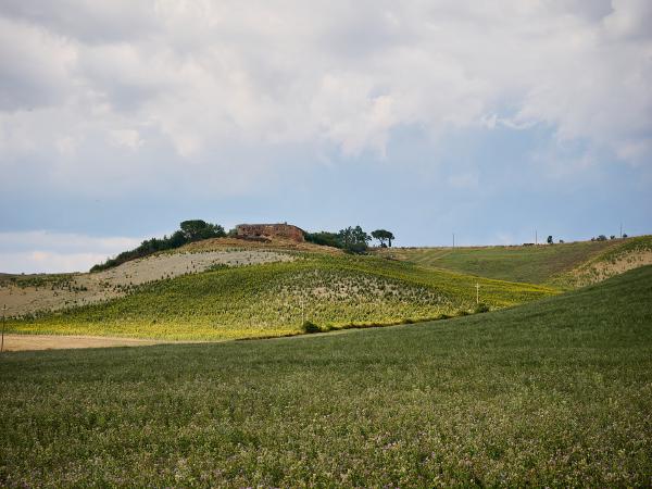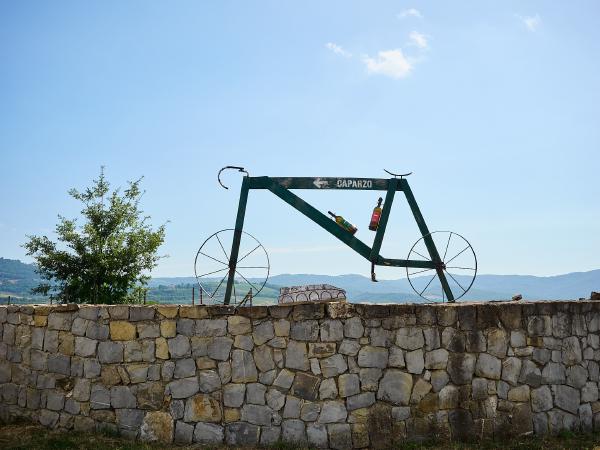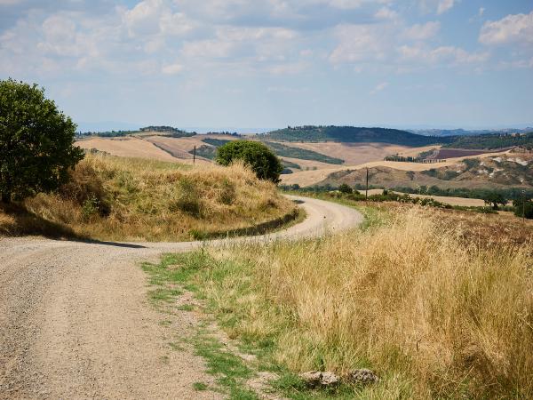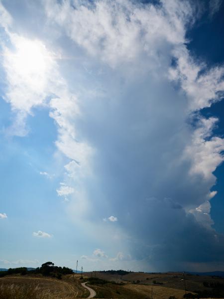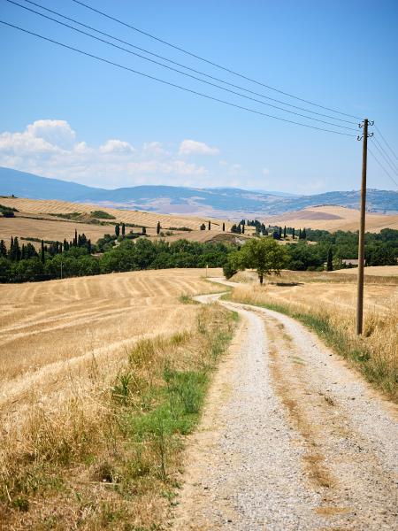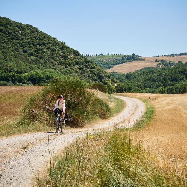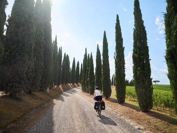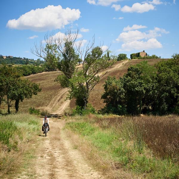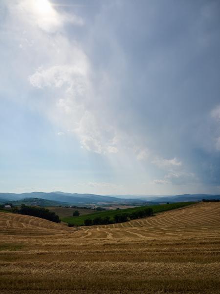 Tag Nummer Einundachzig von der Nähe von Montepulciano bis kurz vor Siena. Heute geht’s wieder mal bergauf los. Nach einem kurzen Anstieg nach Montepulciano hoch ist das aber auch geschafft. Aber es soll ja nicht der letzte Anstieg des Tages bleiben, weil die Gegend ja doch einige nette Städtchen auf Hügeln zu bieten hat. Also erst mal bisschen wellig weiter bis wir dank unserer geplanten Route wieder mal über einen ausgewaschenen Singletrail ins Tal fahren. Hat auch Spass gemacht. Danach ging es dann nach Pienza. Auch wieder ein süßes Städtchen mit einem coolen Juwelier, der Schmuck im Insektendesign anbietet. Leider(?) hat sich Ari nichts finden können. Danach ging es wieder über verschlungene Pfade mal steil bergab und vor allem bergauf weiter bis wir erst noch schöne rollende Strade Bianche und dann noch ein bisschen flache Straße genießen konnten. Zum Schluss galt es noch ein bis zwei kleinere Hügel zu überwinden. Trotz heißem Wetter kein Problem, da man hier ja überall Trinkwasser finden kann für die vielen Pilger die einem über den Weg laufen. Außerdem konnten wir zwischendurch auch ein bisschen Regen genießen. Also die paar Tropfen die es tatsächlich auf den Boden geschafft haben.