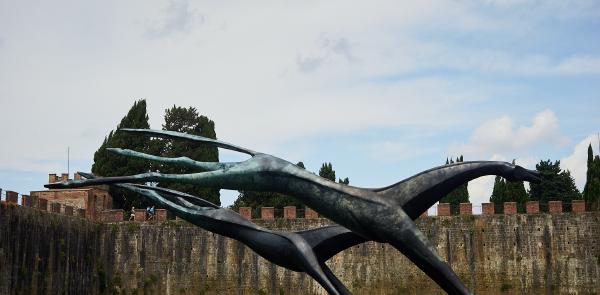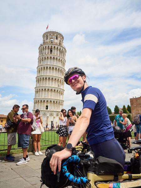 Tag Nummer Vierundachzig von Catena über Pisa nach Livorno. Ein flacher Tag. Aber erst mal noch kurz über die 100% Luftfeuchte und mangelnden Wind über Nacht beschweren, die bedingt hatten, dass unsere Kleidung und Handtücher morgens gefühlt nasser waren als am Abend davor nach dem Waschen. Aber gut. Die Luftfeuchte lag dafür auch den ganzen Tag schön hoch. Dann also erst mal los und unterwegs ein wunderbares Café gefunden in dem wir uns Frühstück gönnten, da wir vergessen hatten vorzusorgen… Dann ging es über die Ciclopista d’Arno nach Pisa. Zwischendurch vermutlich nicht ganz routenkonform über Dämme die nur einen Trampelpfad hatten. Und vorbei an Kreuzungen deren Beschilderung ich als eher dürftig bezeichnen würde. Nicht so ganz die Stärke unserer Nachbarn. In Pisa dann ins Gewimmel um den Turm herum und wieder richtig Tourist sein. Danach konnten wir aber einen weiteren schönen Radweg an die Küste genießen, der abseits der Straße durch die Gegend führte. Dann also wieder mal Meer sehen, diesmal das Tyrrhenische. Dann die Küste entlang nach Livorno. Also die “Küste”, weil hier alles nur Resorts sind die natürlich Eintritt wollen und man vom eigentlich ganz netten Radweg nix vom Meer sieht. Ich erinnere mich wieder warum ich “Strände” in Italien nicht ganz so toll finde. Aber dann halt den gut ausgebauten Radweg bis nach Livorno. Nur nicht in die Stadt, denn am Stadtrand wird man ins Hafengebiet ausgespuckt und darf sich dann über doch eher spannende Straßen ins Zentrum durchkämpfen. Aber auch das haben wir überlebt.