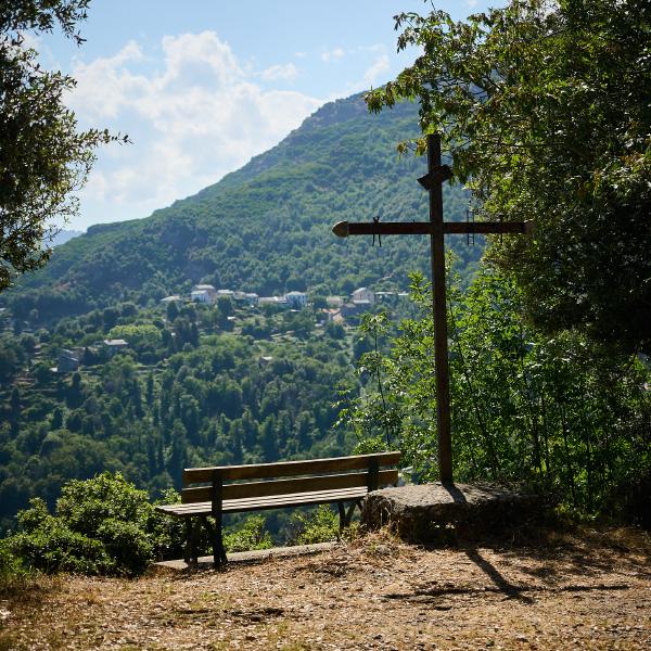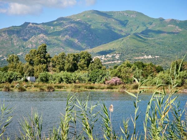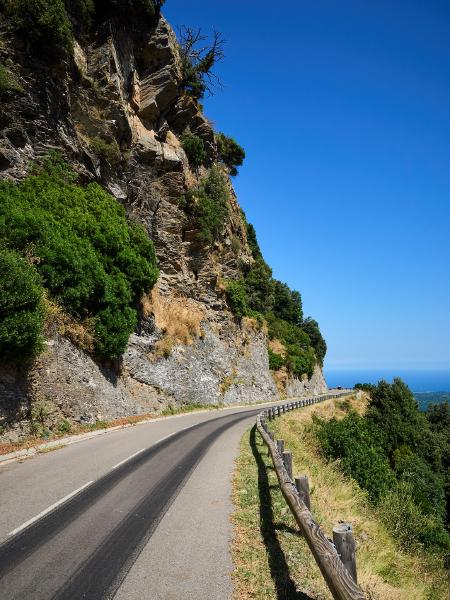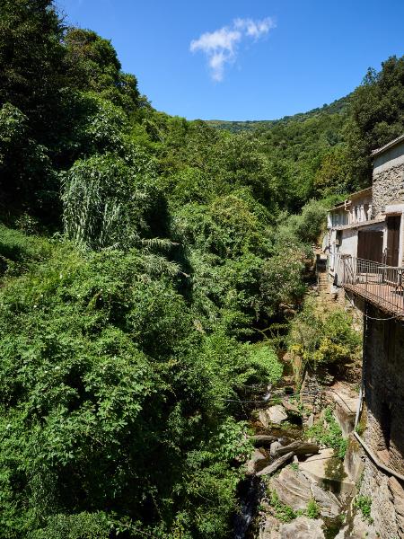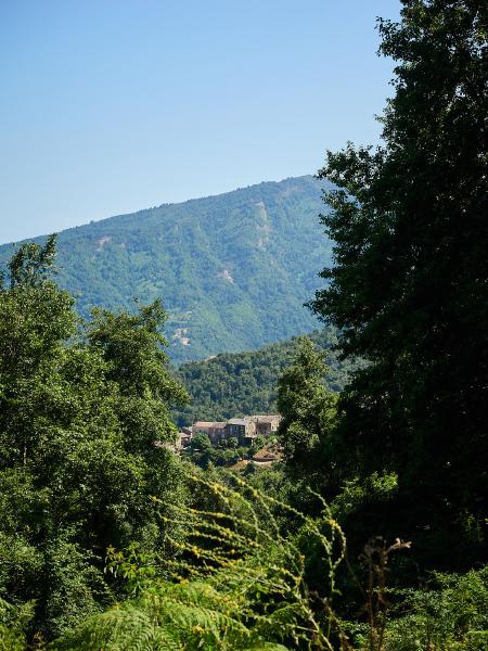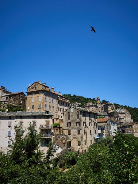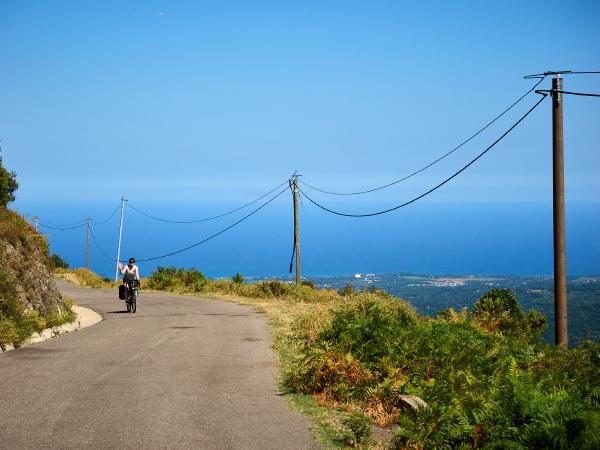 Tag Nummer Sechsundachzig von Bastia nach Pruno. Nach einer recht kurzen, dafür lauten Nacht ging es erst mal aus Bastia raus (einfacher gesagt als getan wenn man die 4-spurige Hauptstraße meiden möchte) auf die Landzunge bei Biguglia. Dort rollten wir uns gemütlich im Flachen ein, nur der Wind wollte nicht so recht mitspielen. Soll ja nicht zuu einfach werden. Danach ging es in die Hügel südlich von Bastia um der Hauptstraße und dem Verkehr zu entgehen. In den Hügeln angekommen waren wir (vor allem Flo) ob des Kontrastes zum Stress der Straße im Flachland begeistert. Wirklich sehr ruhige, schmale Straßen, auf denen und schon mal zwischendurch eine halbe Stunde lang niemand begegnete. Und immer wieder niedliche kleine Dörfchen und wunderschöne Aussichten. Auch die Steigung der Straße war immer sehr angenehm gewählt, was nach dem Balkan und Italien schon quasi Verzückung in uns auslöste. Zwischendurch sahen wir immer wieder Rotmilane fliegen, was auch eine sehr feine Abwechslung war. Und wieder überall Brunnen um den Durst vom Anstieg niederzuringen. Nach einem längeren Anstieg wurden wir dann auch mit einer wunderschönen Abfahrt zu unserem Tagesziel belohnt.