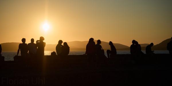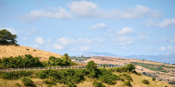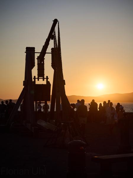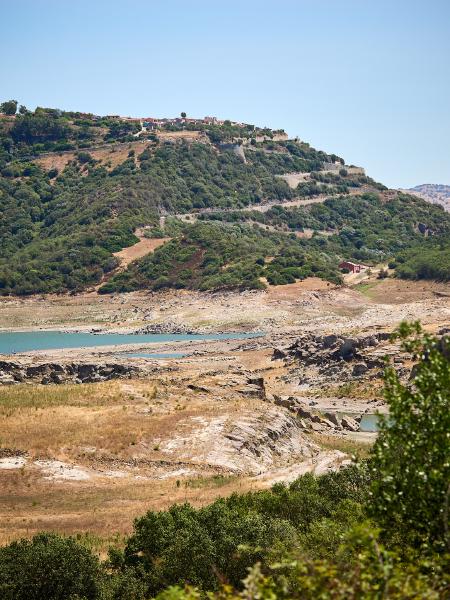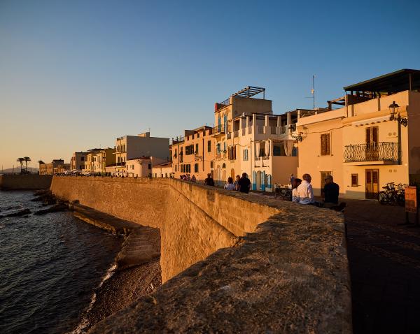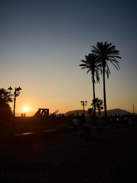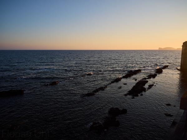 Tag Nummer Sechsundneunzig von Cossoine nach Alghero. Langsam werden die Fähnchengirlanden und der Mangel an Leuten im Hinterland sehr auffällig. Es ist wohl Ferragosto-Zeit. Gut, dass wir uns demnächst wieder verdrücken. Aber erst geht es durch das richtige Hinterland. Heute fahren wir auf einer großen Strada Statale, auf der wirklich nichts los ist. Alle 5 Minuten fährt mal ein Auto vorbei. Außer als wir an einem Brunnen pausieren und eine Hochzeitsgesellschaft vorbei fährt. Da waren alle Leute aus den umliegenden Dörfern versammelt und unterwegs. Vielleicht hatte das den Mangel an Verkehr davor bedingt. Ansonsten sehen wir unterwegs noch den halb ausgetrockneten Speichersee Lago dell’Alto Terno und viel Landschaft bevor wir in Alghero ankommen. Dort erkunden wir noch den Ort bei Sonnenuntergang. Auch sehr hübsch hier. Auch wenn das Seegras am Strand und in der Luft liegt.