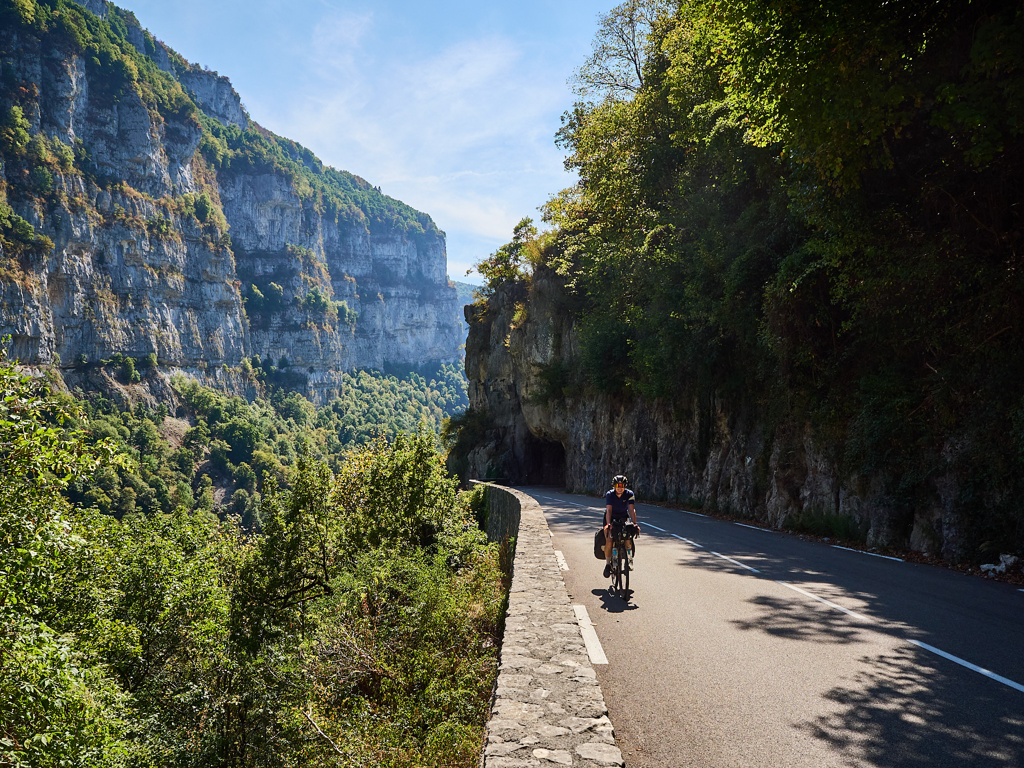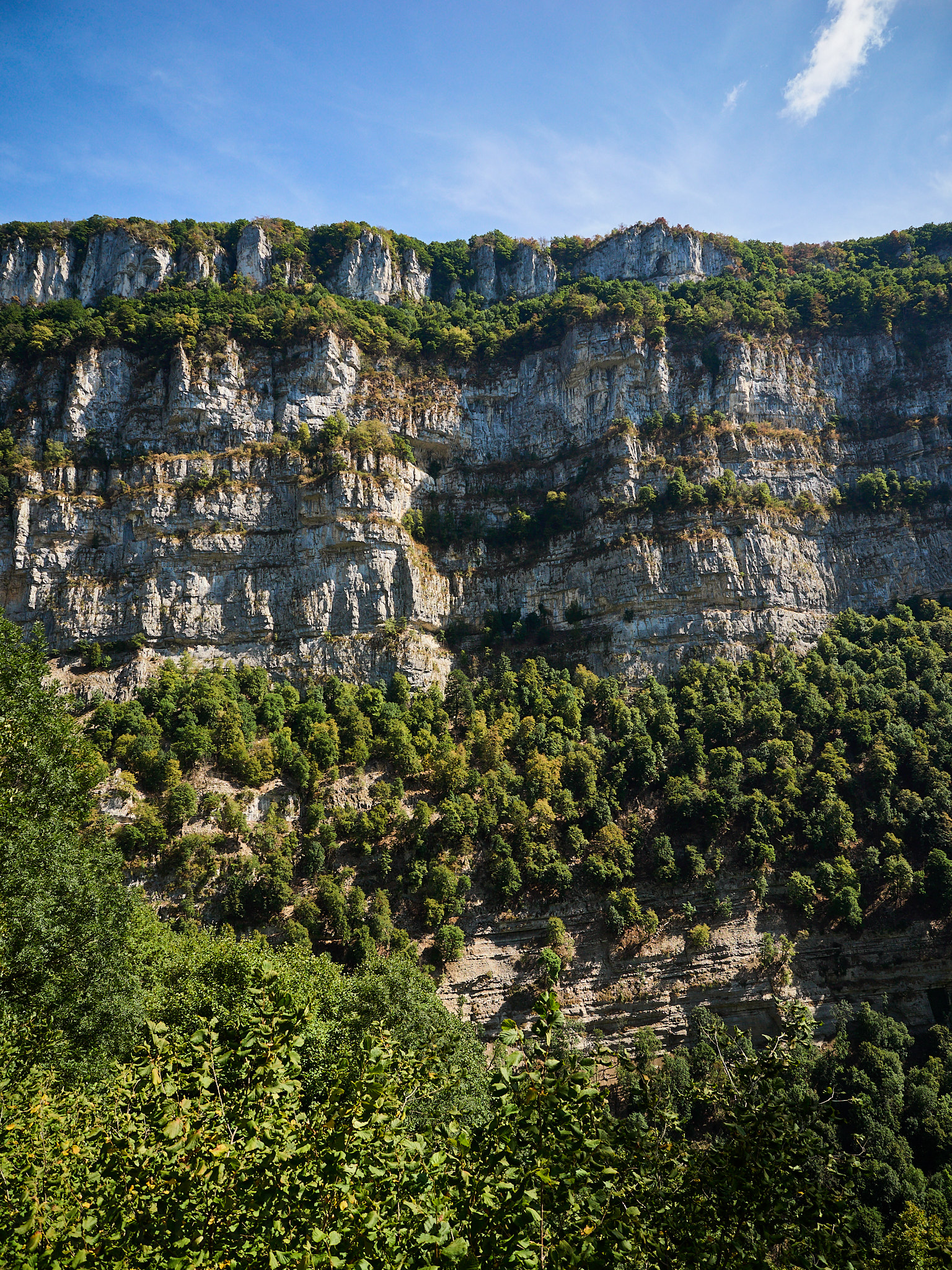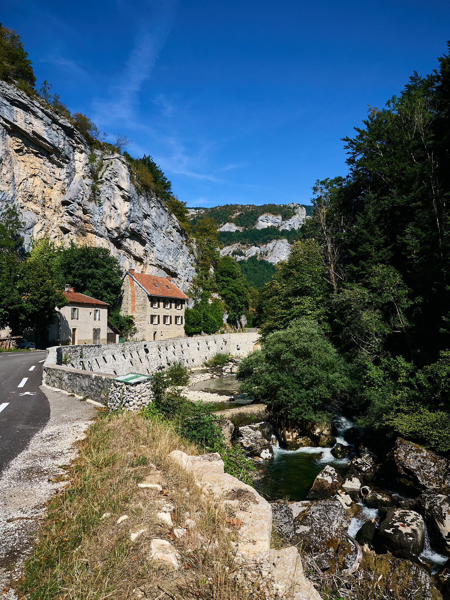 Tag Nummer Einhundertundsiebzehn von Valence nach Lans-en-Vercors. Heute schmeckt die Luft noch mehr nach Herbst. Der Morgen ist schon um einiges frischer als noch vor kurzer Zeit in der Provence. Nur die Kräuter am Wegesrand, die bei jedem Stehenbleiben ihr Aroma versprühen, zeugen noch von der Nähe zum anderen Départment. Aber trotzdem will heute ein bisschen Strecke hinter uns gebracht werden. Nachdem Ari im flachen Gebiet nur wenig Freude und keinen vernünftigen Rhythmus beim Fahren finden kann verziehen wir uns doch schon bisschen vor Grenoble in die Berge. Es geht die Bourne-Schlucht nach oben. Landschaftlich ein Highlight und auch die Straße ist wirklich toll zu fahren. Mit mehr zu sehen geht es Ari auch gleich ein bisschen besser. Auch weil der Wind nicht ganz so nervenzermürbend gegen unsere Näschen bläst. So steigen wir auf bis wir bei Villard-de-Lans in das Hochtal kommen. Es spannt sich ein tolles Panorama vor uns auf. Willkommen zurück in den Alpen. Bisher hatten wir sie ja noch nur zu unserer Rechten. Jetzt geht es durch und nicht mehr nur dran entlang.