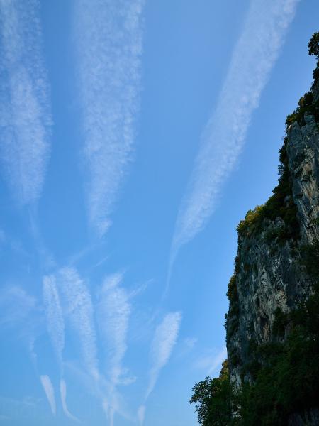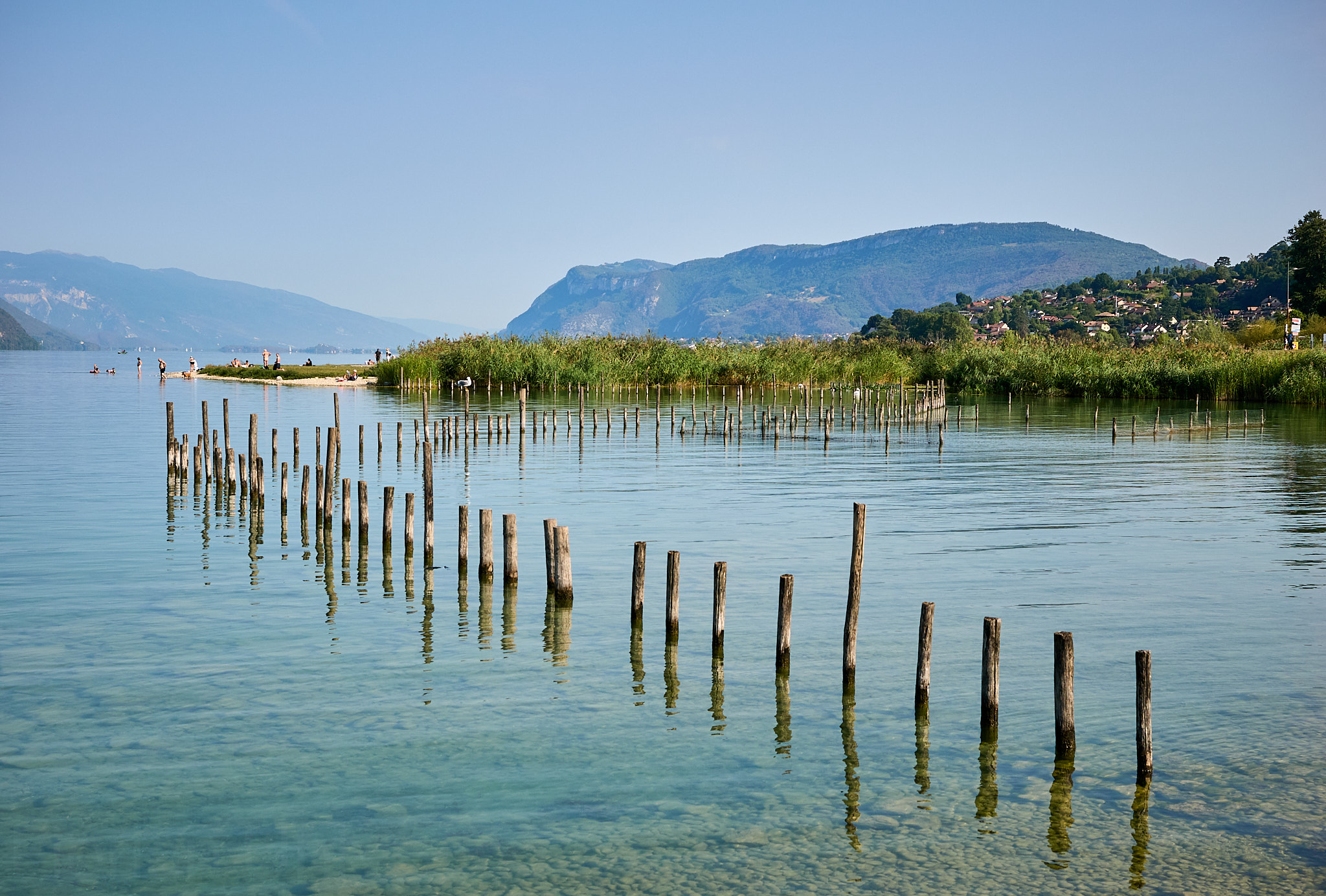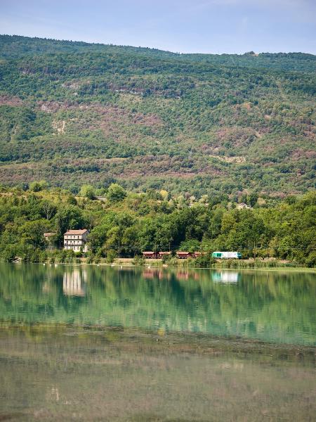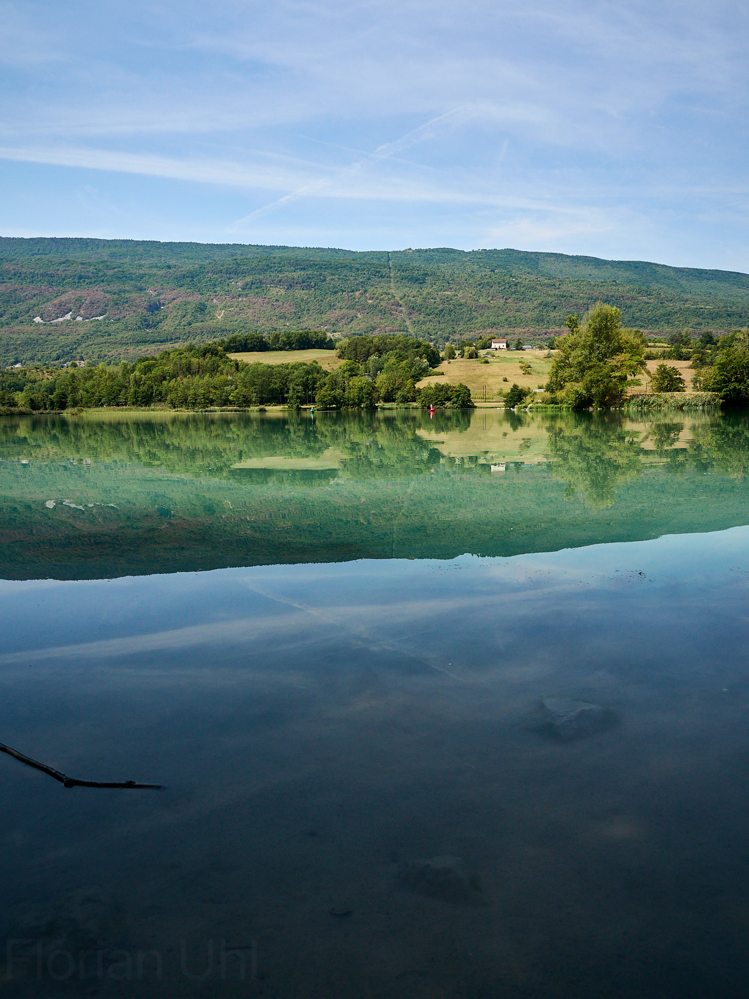 Tag Nummer Einhundertundzwanzig von Chambéry nach Genf. Die Strecke führt uns erst am Lac de Bourget vorbei und dann wieder auf die Via Rhona. Weit kommen wir nicht von diesem Fluss weg momentan. Eine kurze Stärkung auf einem Bocchia-Platz später geht die Fahrt weiter. Also fahren wir dann langsam die Hügel hoch um das landwirtschaftliche Gebiet ein bisschen zu durchqueren und biegen dann noch mal in die Wälder und die Felder vor Genf. Leider haben wir nicht die beste Route in die Stadt gewählt und sind mit vielen Pendlern unterwegs. Immerhin gibt es einen eigenen baulich getrennten Fahrradweg. Aber der Lärm der vielen Autos lässt uns dann doch wieder auf die ruhigen Nebenstraßen ausweichen. Dort rollen wir dann recht entspannt zu unserem Nachtlager.