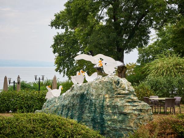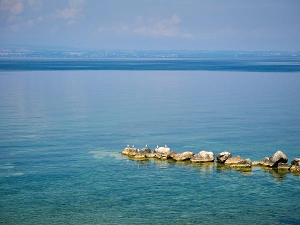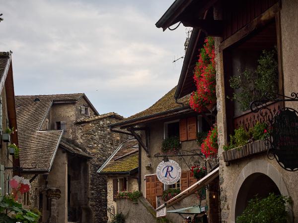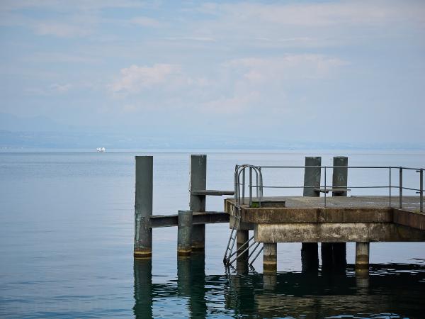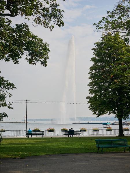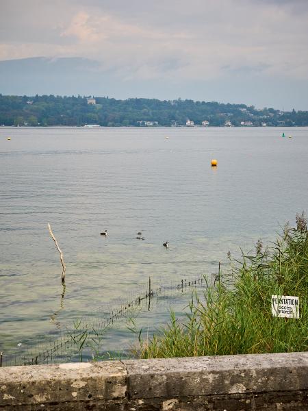 Tag Nummer Einhundertundeinundzwanzig von Genf nach Évian-les-Bains. Wir starten bei bedecktem Himmel in der Hoffnung dem Regen noch ein bisschen entgehen zu können. Heute geht es noch mal zurück nach Frankreich. Da das Wetter von Nordwesten her schlecht werden soll fahren wir - schlau wie wir sind - an der Südostseite des Sees weiter. Erst drehen wir aber noch eine kleine Runde durch Genf selbst. Die Stadt haben wir zwar schon ein bisschen besucht gehabt, aber es die Perspektive vom Rad aus ist dann doch noch mal was anderes. Auch ist unser letzter Besuch schon ein paar (erschreckend viele) Jahre her. Danach fahren wir erst am Ufer entlang und dann, da der Radweg in die Hügel hinter dem See und Weg von der Uferstraße (glücklicherweise) führt, im Hinterland des Sees durch die Gegend. Und auch ein bisschen durch den Regen, der sich nicht an die Vereinbarung halten wollte und auch den Südosten des Sees heimsuchte. Zwischendurch kommen wir auch immer wieder an den See, was auch fein ist. Die Abwechslung macht’s. So sahen wir zum Beispiel auch Yvoire. Das wurde auch kurz zuvor von einem Schaufelraddampfer angesteuert, der eine Hundertschaft silbriger Leute ausgespuckt hatte. Eine kleine Runde durch den Ort gehörte trotzdem dazu. War auch weitläufig genug, dass man sich nicht gegenseitig auf den Füßen stand. Danach ging es weiter bis nach Évian, wo wir an vielen Baustellen vorbei mussten, da sie hier offensichtlich viel herzurichten hatten, war eine erstaunlich lange und verwinkelte einfahrt. Dann wurden wir noch mal von der Rezeption unseres Unterschlupfes auf maximal komplizierte Art herumgeschickt, was aber immerhin dazu führte, dass wir an ein paar der Quellen des Ortes vorbei kamen.