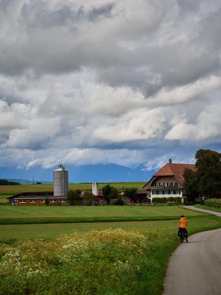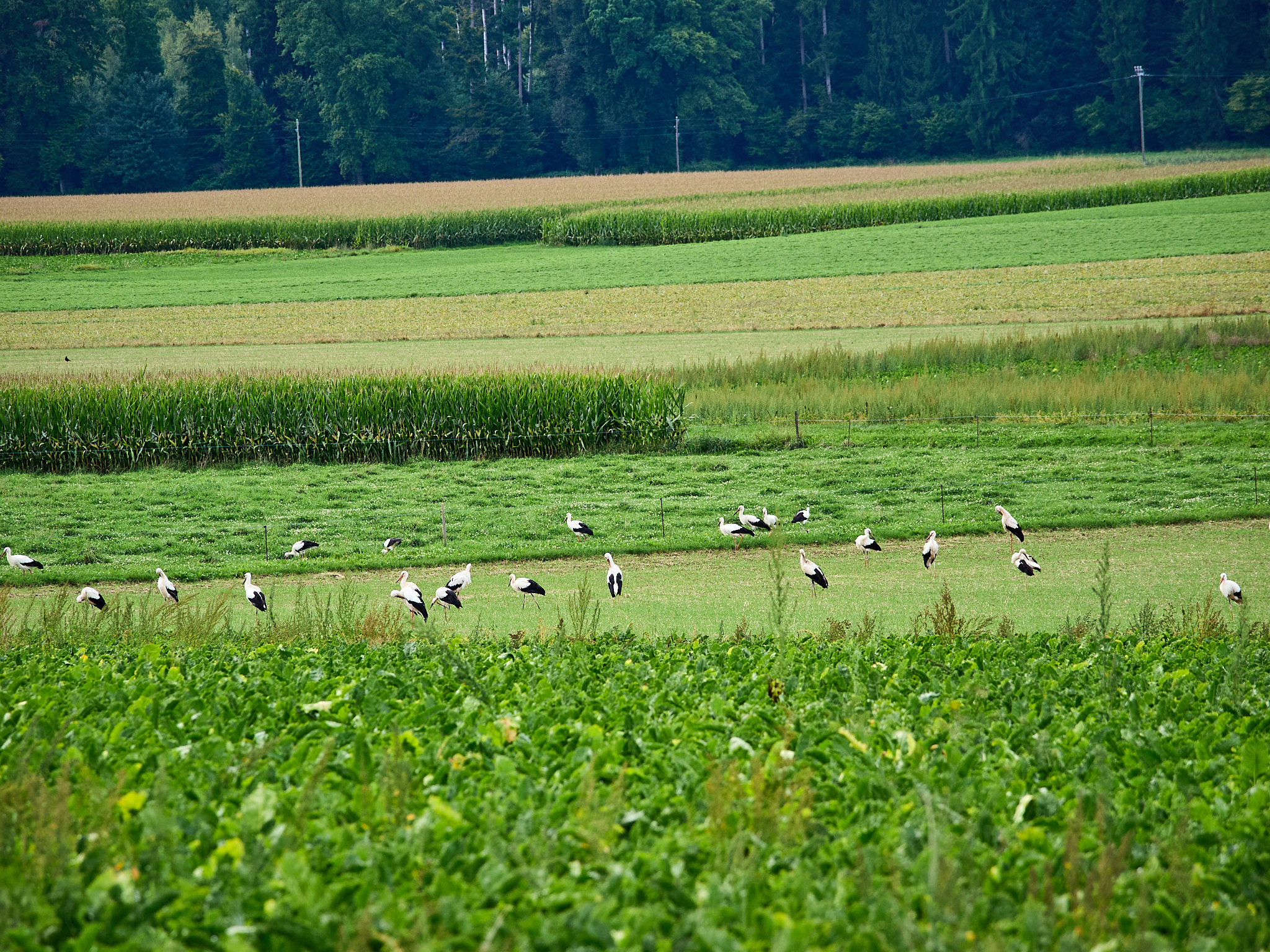 Tag Nummer Einhundertundvierundzwanzig von Fribourg nach Aarwangen. Schon der Blick aus dem Fenster am Morgen offenbart, dass das Thema des heutigen Tages Regen sein wird. Na gut. Also mal wieder die Klamotte auspacken und mit Regenjacke bewaffnet auf’s Rad. Die ersten Kilometer nieselt es noch, und wir nehmen eine recht entspannte Route nach - und vorbei - an Fribourg. Danach landen wir auf einem schönen Viadukt (Frandfey-Viadukt) und nachdem wir dieses gequert haben sind wir mit einem Schlag wieder in deutschsprachigem Gebiet. Die Umstellung ist dann doch recht aprupt und so ertappen wir uns immer wieder dabei, dass wir die Leute mit einem freundlichen “Bonjour!” begrüßen. Was aber auch wurscht ist, denn die Fußgänger freuen sich auch so. Die Radfahrer in der Schweiz sind aber ein etwas spezielleres Kapitel. Hier wird sich offensichtlich nicht gerne Gegrüßt unter dem Velo-fahrenden Volk. Komisch und bisschen nervenaufreibend für uns, aber da müssen wir wohl durch. Genau so mit Bern. Da hat uns dann auch ein mächtiger Regenschauer erwischt, der eine Besichtigung der Stadt eher für ein anderes Mal vorsehen lässt. Also in alle Regensachen reinschlüpfen die wir seit - Notizen checken - Slowenien nicht mehr gebraucht haben. Durch das unstete Wetter geht es dann im Alpenvorland weiter. Immerhin keine Pässe hoch und runter? Zwischendurch werden wir schon wieder gut trocken, da wir eine gute Wetterpause erwischen. In der sehen wir auch allerlei Federvieh, unter anderem die größte Ansammlung an Störchen die wir bisher gesehen haben. Aber Ari blickt mit argwönischem Auge der nächsten Regenfront entgegen die sich in Fahrtrichtung warmregnet. Also noch mal rein in die Regenklamotte und auf ins kühle Nass.